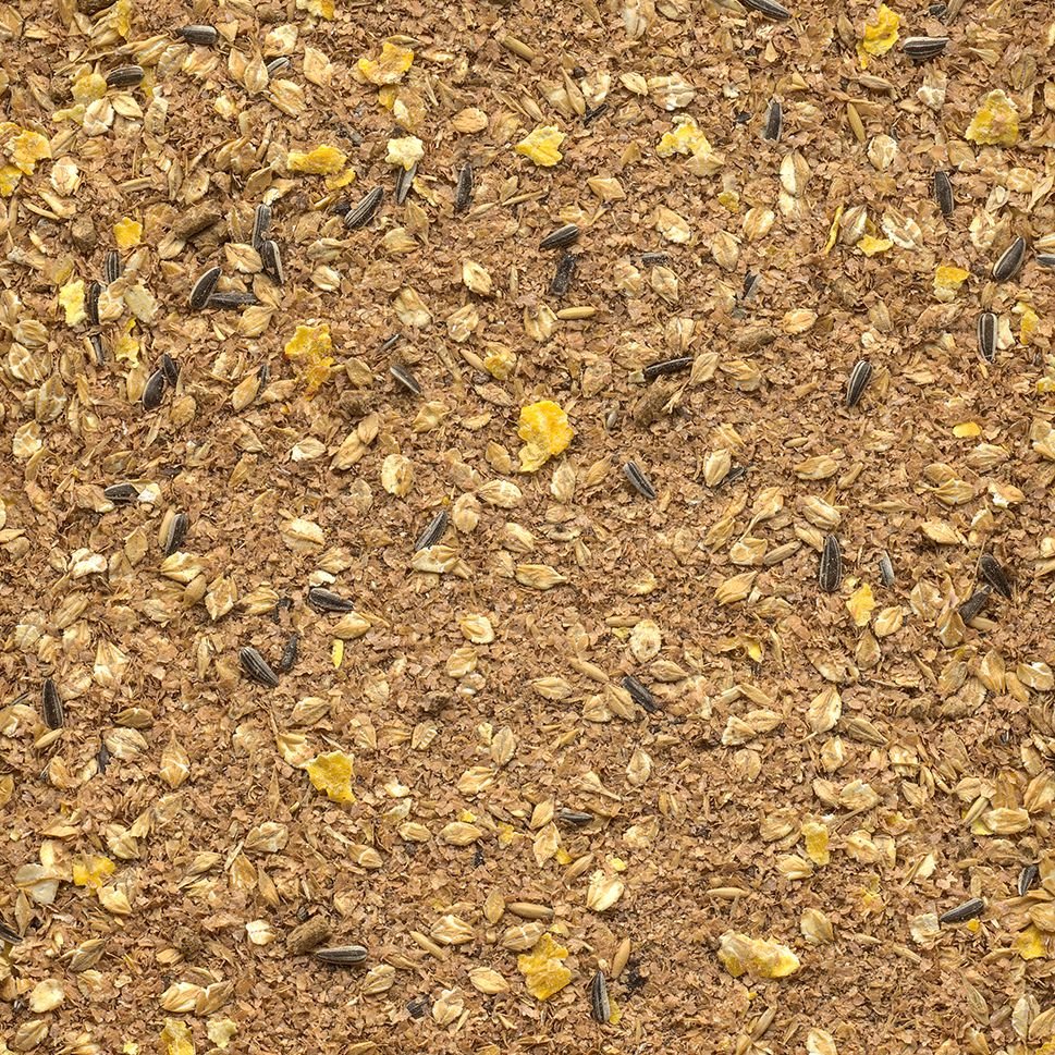 Weizenkeimkleie, Gerstenflocken 24,5 %, Leinkuchen 15,1 %, Haferschälkleie, Maisflocken, Hafer, Sonnenblumensaat 4,0 %, Calciumcarbonat, Sonnenblumenöl, Natriumchlorid, Zuckerrohrmelasse, Fructo-Oligosaccharide, Monocalciumphosphat, Kräuter 0,2 % (Brennnesselblätter, Eibischblätter, Fichtennadeln, Eibischwurzel, Liebstockwurzel, Beifusskraut, Grünhafer, Petersilienblätter, Hagebuttenschalen, Bockshornkleesamen, Kalmuswurzel, Goldrutenkraut, Hibiskusblüten, Island Moos, Löwenzahnwurzel)