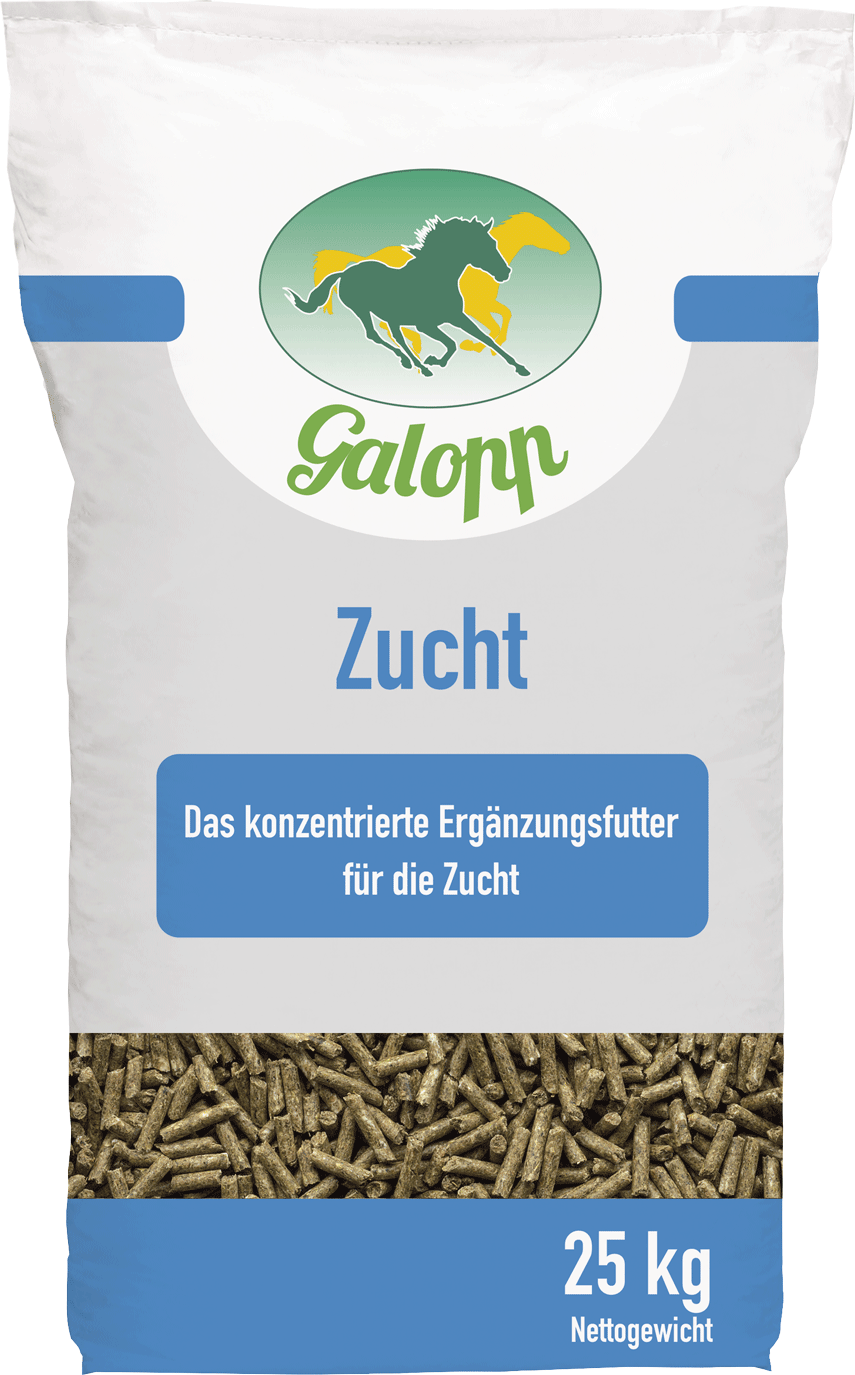 Zuchttiere und Jungpferde stellen hohe Ansprüche an die Nährstoff- und Vitalstoff-Kombination des Futters. Galopp Zucht ist ein speziell konzipiertes Ergänzungsfutter für hochtragende und laktierende Stuten, Deckhengste sowie Jungpferde.