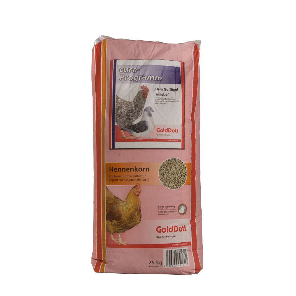 Das GoldDott Hennenkorn ist das GoldDott Hennenmehl in Pelletform. Wir empfehlen das Futter mit GoldDott ZentraKorn im Verhältnis 2:1 zu ergänzen, das bedeutet z.B. 80g Hennenkorn und 40g ZentraKorn.