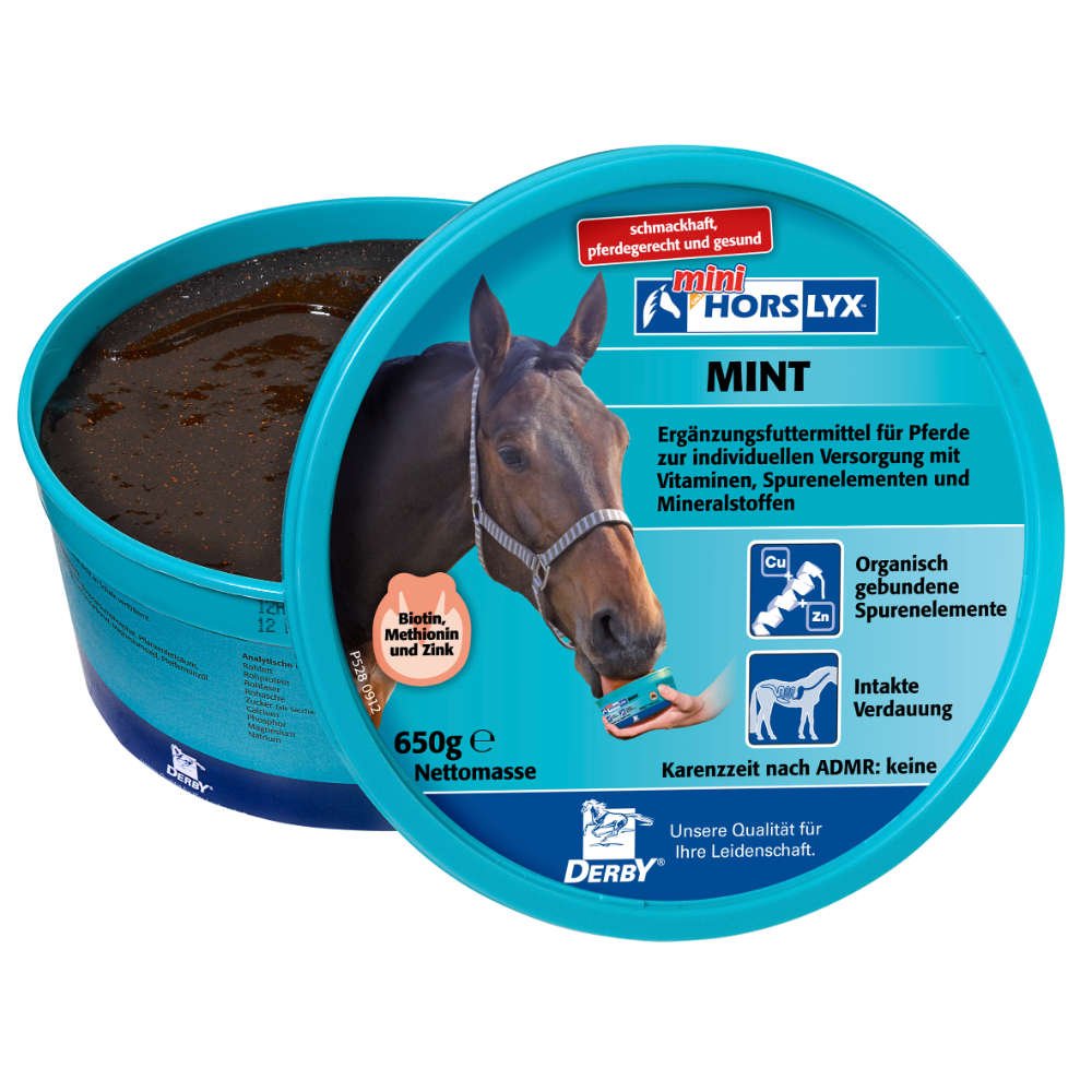 Die Leckmasse DERBY Horslyx Mint ist mit wertvollem Minzöl versetzt und bestens für Pferde geeignet, die unter Husten und Stauballergie leiden. Dieses Produkt reduziert nicht nur Langeweile und Stress, sondern ist auch wetterfest und kann somit sowohl im Stall als auch auf der Weide gefüttert werden.